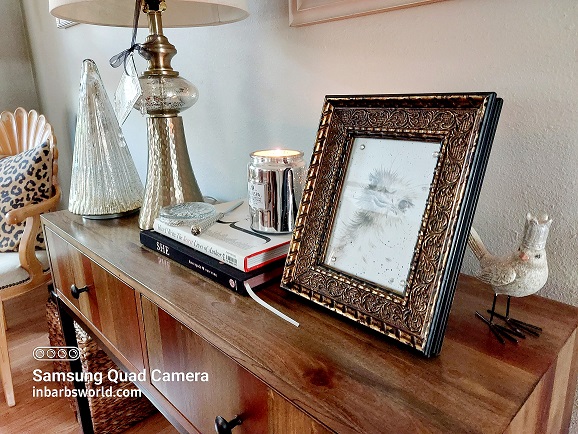 There’s one table I absolutely adore and what sits on it changes quite frequently. A couple of weeks ago, my daughter noticed the change and said, “Should I be concerned you already have a silver tree on display?” We originally purchased it as Christmas décor, but I believe it’s pretty anytime of year. The metals are fascinating décor, so I went one step further and moved more silver onto the table.