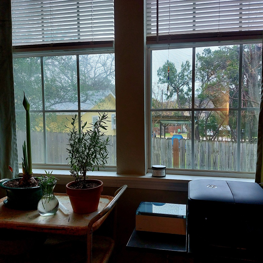 There’s another window sitting next to this one which is described as a double window. While outside, I didn’t take time to clean that window, but the one that held the blue tape is crystal clear. Sitting here now, looking at the two windows side by side, there is a huge contrast between the two. It’s obvious that for years part of my world has been viewed through dirty glass, and I need to be better at cleaning windows, but I’m still not sure why it took so long to remove the eyesore piece of tape. Now that it’s done, the effort was more than worth it.