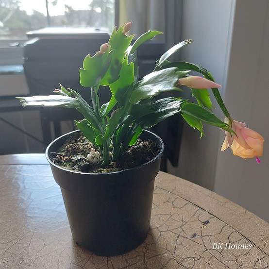 There’s a Thanksgiving cactus that has already bloomed once, but looking at it closely I noticed it’s preparing to bloom again. Maybe it wants to bloom more than once and be a Christmas cactus as well. Over the weekend I purchased the most pitiful looking Christmas cactus ever for $3.00, just to bring it home to offer it a better life. It’s been over watered, so will be repotted later today, but even sitting in it’s soggy state, it knows it’s time to bloom. He’s a tenacious little guy.