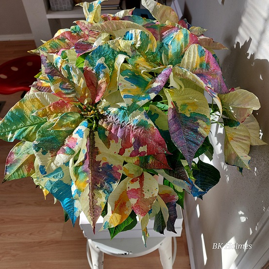 The Poinsettia is a staple this time of year and even though my father grew them from seed, I’ve struggled to keep them alive. When I saw this one infused with watercolor and glitter it begged to come home with me, but plants have strengthened my patience, so it has a good chance of living.