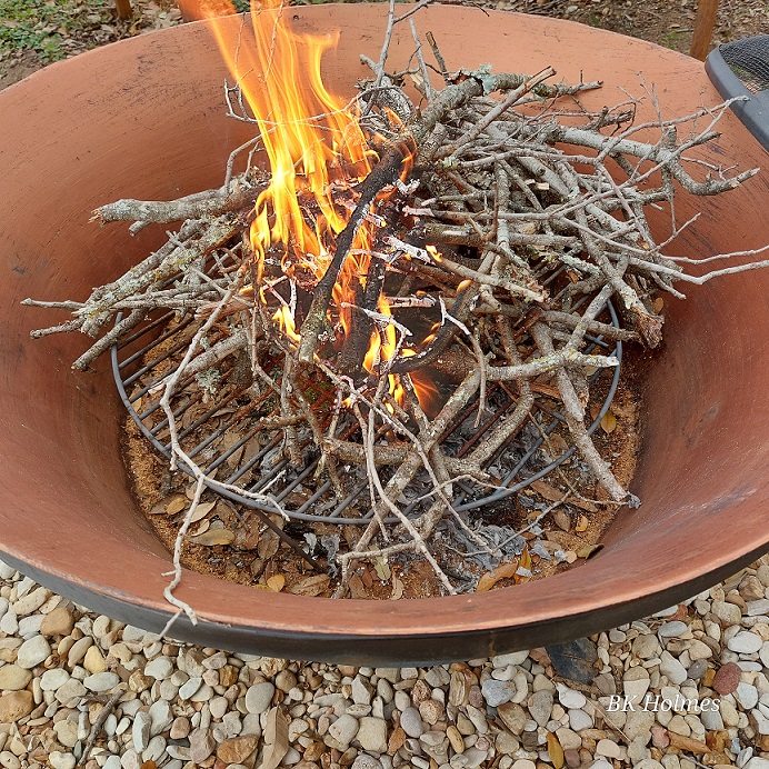 This was more than just an idea to light the pit this week. It was as if my soul longed to sit outside on the bench in front of the warmth of a fire and pulled me toward the idea each day. When the weather prevented me from doing it I felt a twinge of disappointment at the end of the day, but was hopeful that the next day would prove ideal. It’s easy to put off those heart nudges and to see little things that try to prevent us from following the heart. When we hear that still, small voice, it’s a practice to act on the idea without questioning the reason.