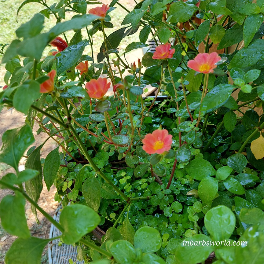 Before 10 am there’s plenty of shade in the backyard and usually a nice breeze is in those shaded areas that feels almost cool to my skin. Standing in front of the Shrimp Plant, spraying it gently with water I realize it’s putting on quite the show. Admiring it’s beauty, I noticed a tiny, orange bloom hidden among the foliage. Looking more closely, that tiny flower seemed familiar and I remembered that bloom from last year!